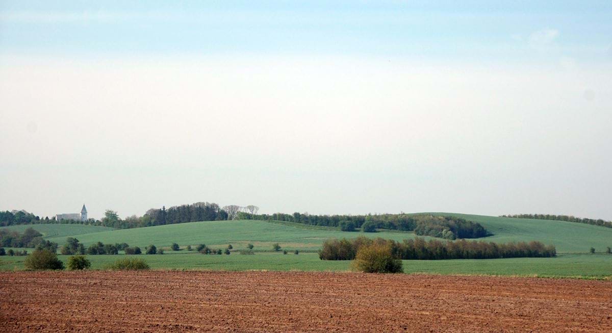 Billedet viser kigget mod Højrup kirke beliggende på Toftlund bakkeø
