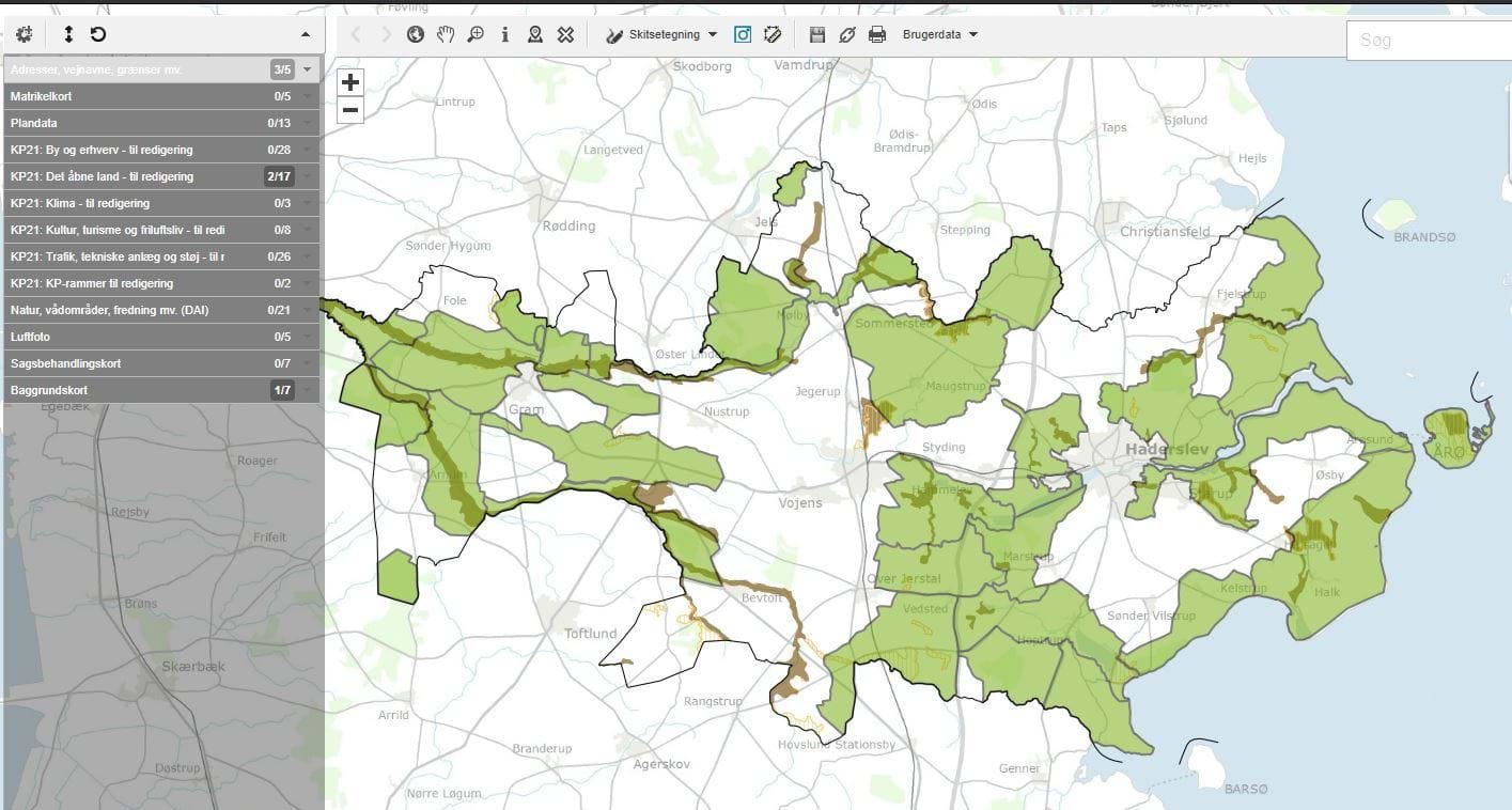 For at søge på oplysninger for din ejendom på kort, som ikke er omfatttet af Kommuneplan 2021 - benyt kortet på Haderslev Kommunes hjemmeside.