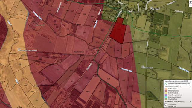 3.5.1 og 3.5.2: Planområdet ligger indenfor udpegning af bevaringsværdige landskaber og udpegning af større sammenhængende landskaber.