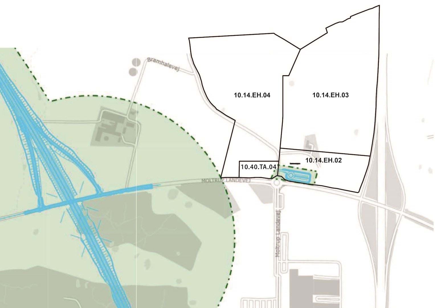 Flytningen af arealreservationen indebærer, at der ved udbygning af erhvervsområdet indenfor kommuneplanramme 10.40.TA.04 og 10.14.EH.04 og den forudsatte udbygning af rundkørslen på Moltrup Landevej, samtidig skal sikres etablering af to tilfartsspor ind i rundkørslen fra nord via Bramhalevej og øst via Moltrup Landevej.