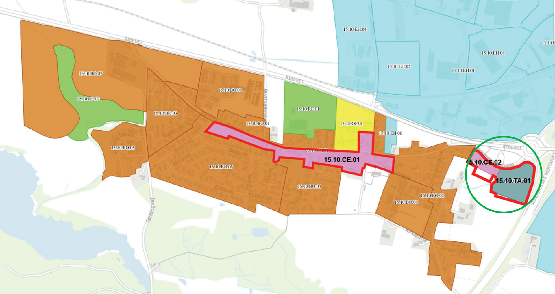 - at justere den specifikke anvendelse og regulering ift. detailhandelsbutikker i rammeområde 15.10.CE.01 – Centerområde Hammelev Bygade Syd.